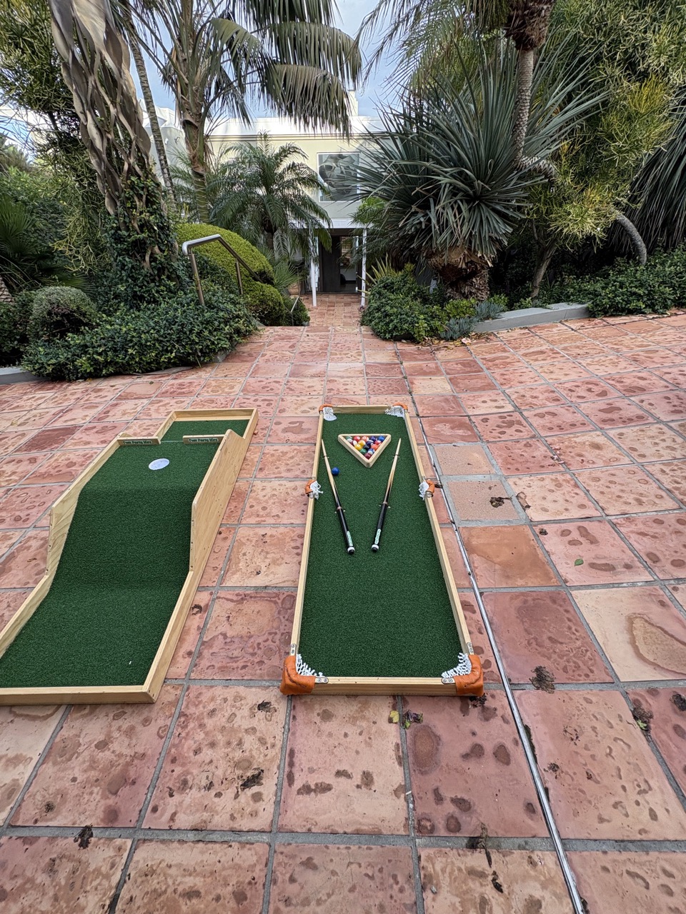 Each hole is approximately 1.8m long and 0.6m wide. For the full 9 holes, a space of around 7×7m works well. We fit most public fields, halls, or venues.